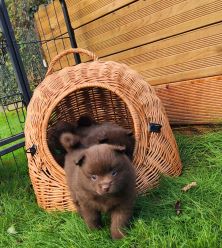 Es sind 2 Rüden und 1 Hündin, alle drei sind braun wie Ihre Mama.
